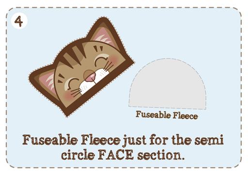 4/ Now cut a semi-circle shaped piece of Fuseable Fleece to fit just the Face