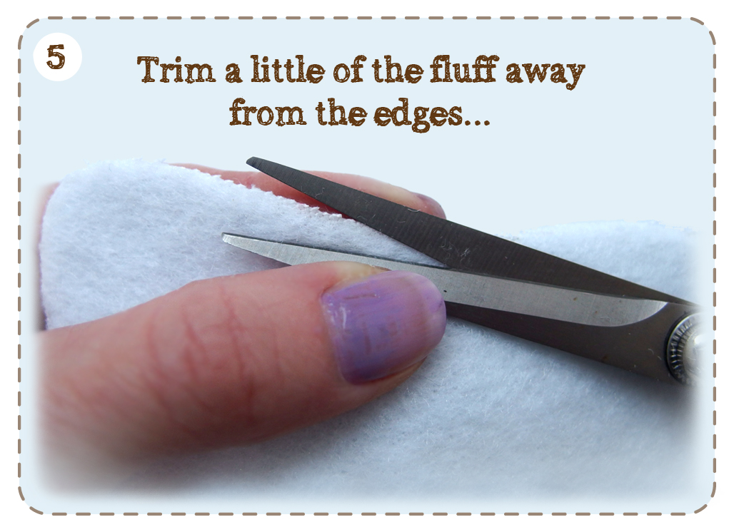 5/ Trim a little of the fluffy bulk of the fusable fleece away from the edges where the sewn seams will be