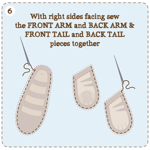 FRONT TAIL and BACK TAIL pieces together, leaving open the edges with the red dotted lines.