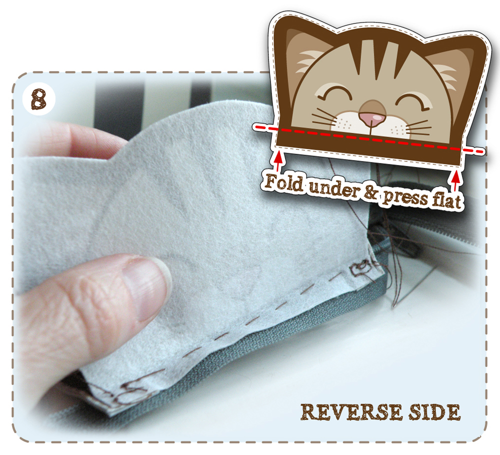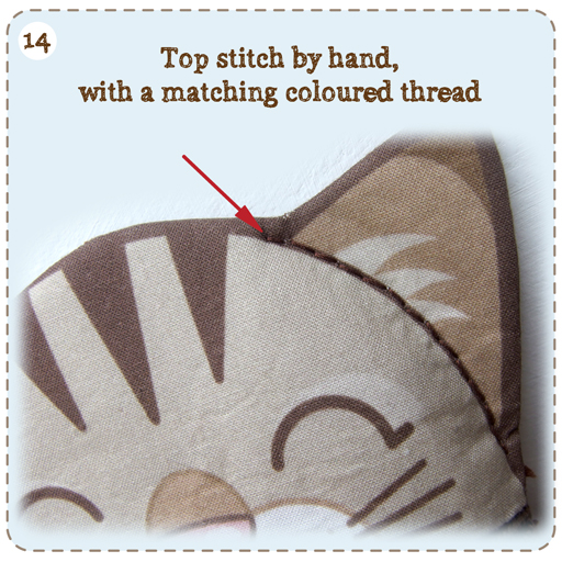 14/ Top stitch, by hand, along the line that divides the head from the ears