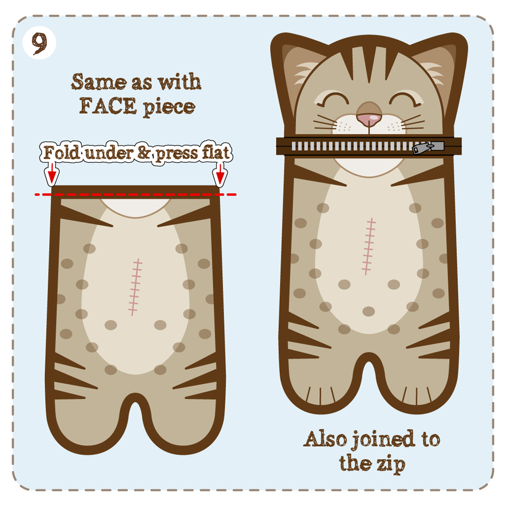 9/ Now with the FRONT BODY piece of the the pencil case; follow the same procedure as the FACE.