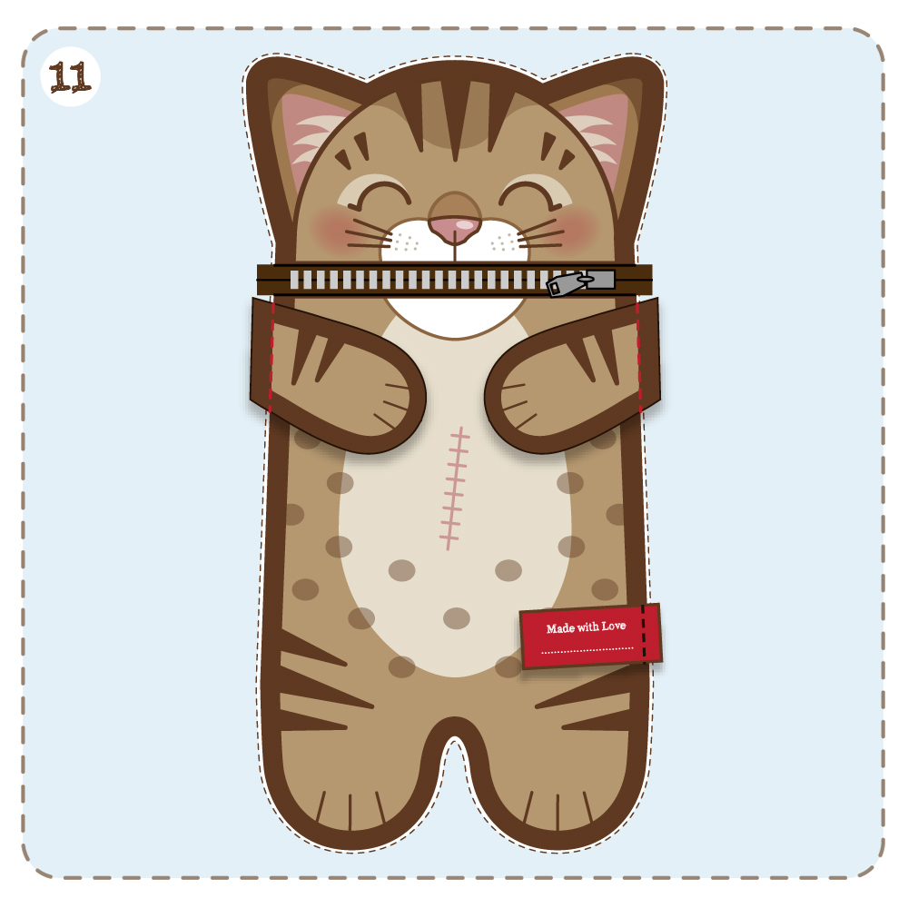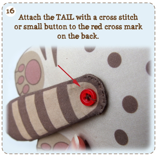 & attach the TAIL with a cross stitch or small button to the red cross mark on the back.